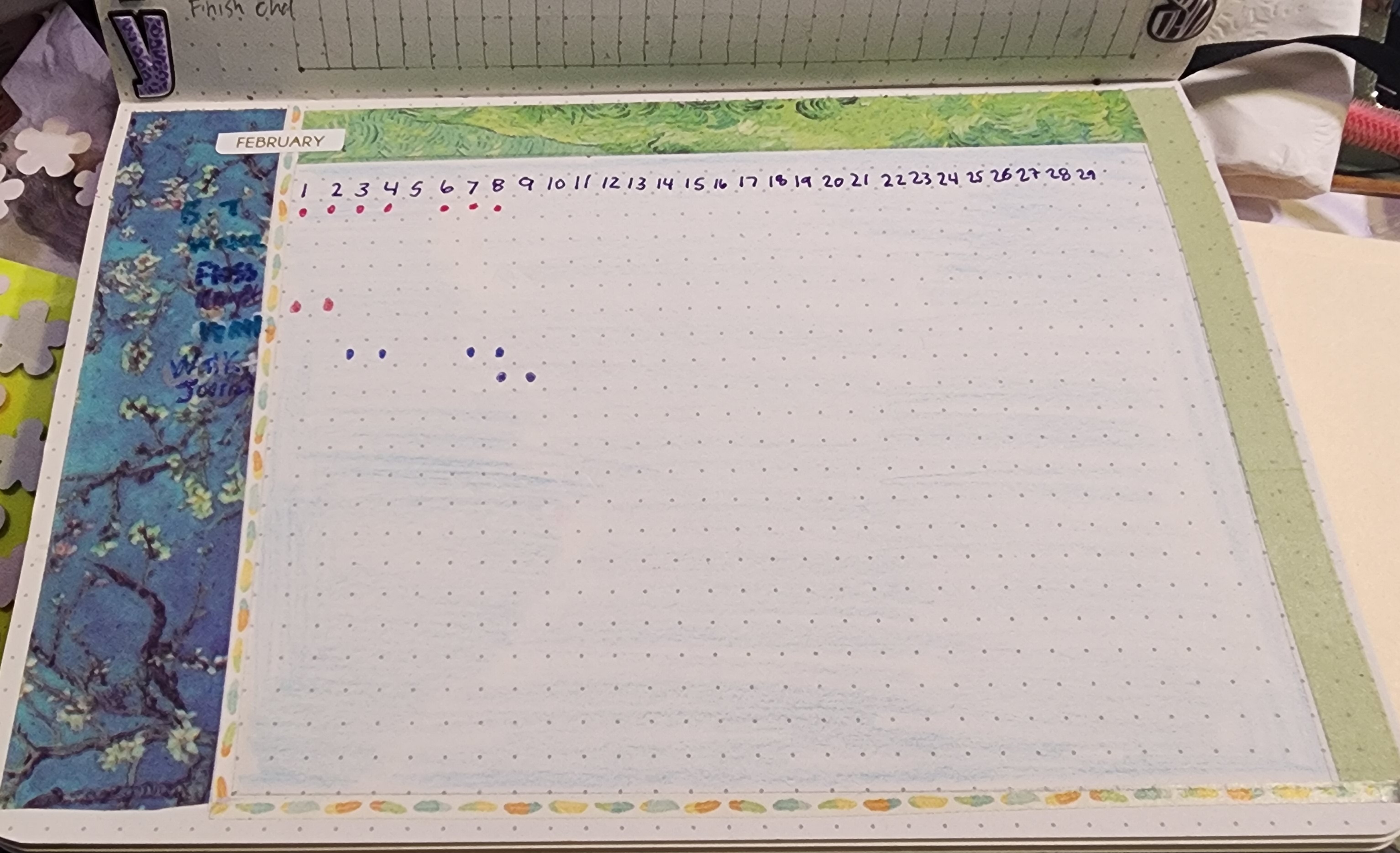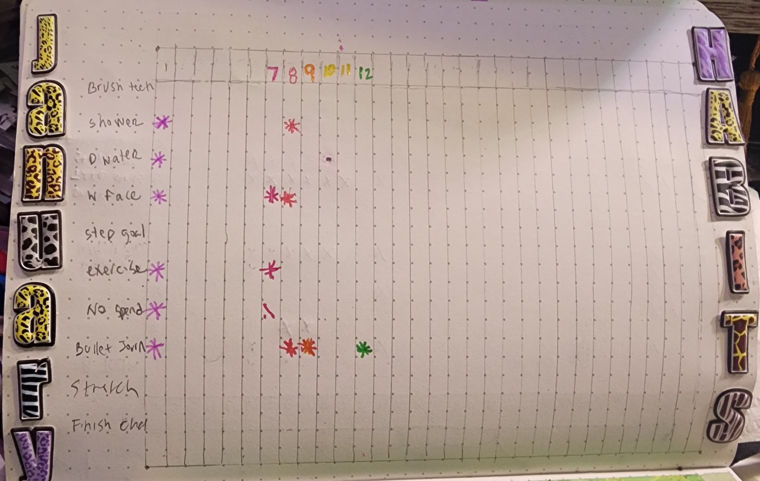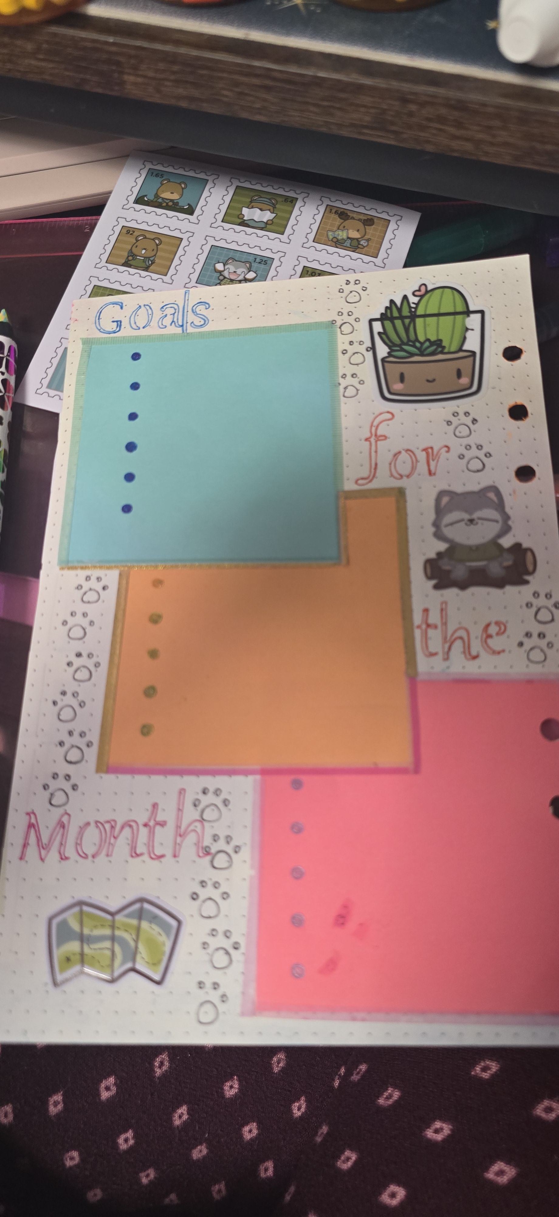 You then want a month calendar than a habit tracker for the month and moods for the months and goals, or other possible things you want to be part of that month