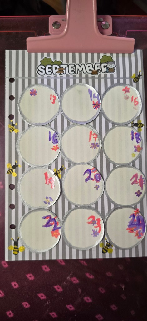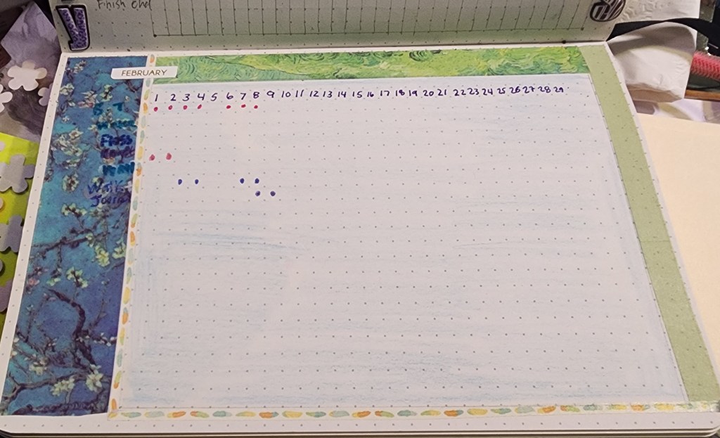 The above is the start of the month, which is the calendar of the whole month. this is were appointments, birthdays, and events that are preplanned.